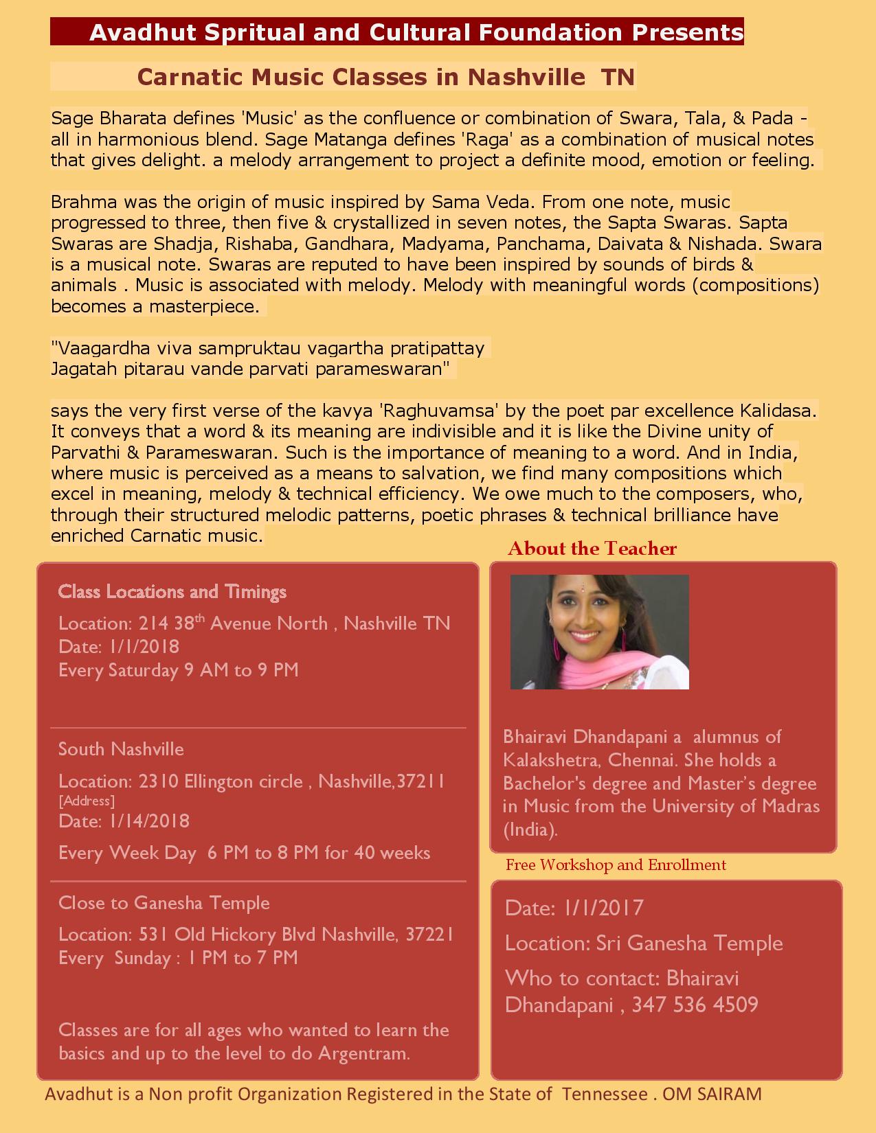 4. Avadhut wishes to make Carnatic Music more mainstream. Avadhut wishes to allow the general public to gain knowledge of Carnatic music by giving them access to free Chamber music concerts