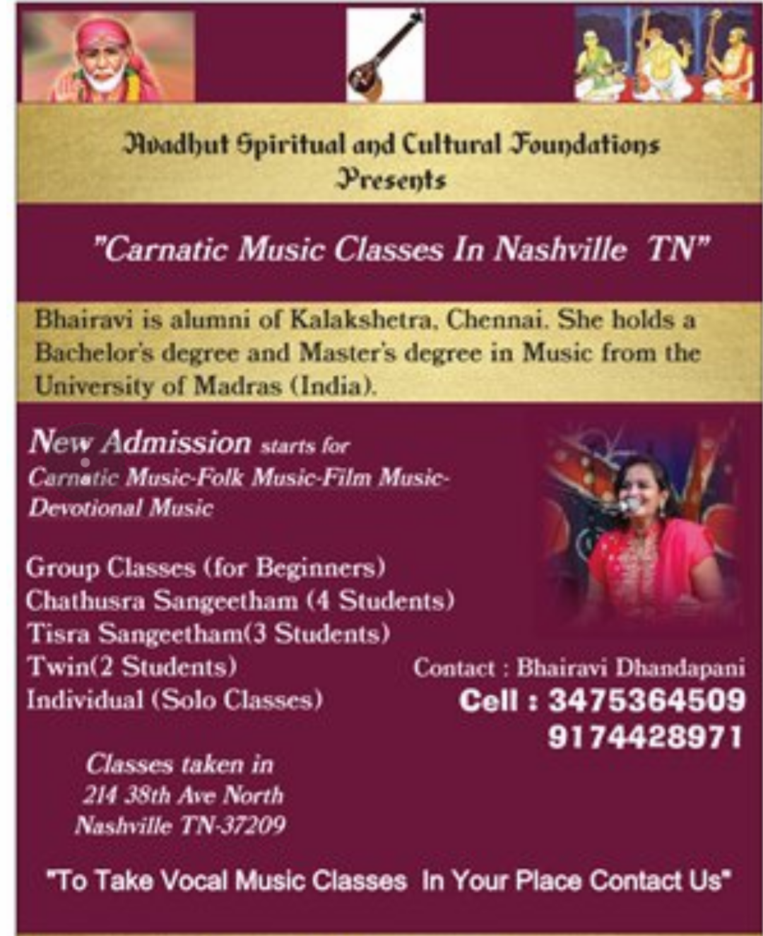 Avadhut offers courses, classes and lessons in different aspects of Indian music and dance in several locations and online.